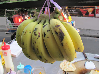 I watched as the vendor tossed my roti into the oil with a metal spatula and folded in the perfectly cut bananas.